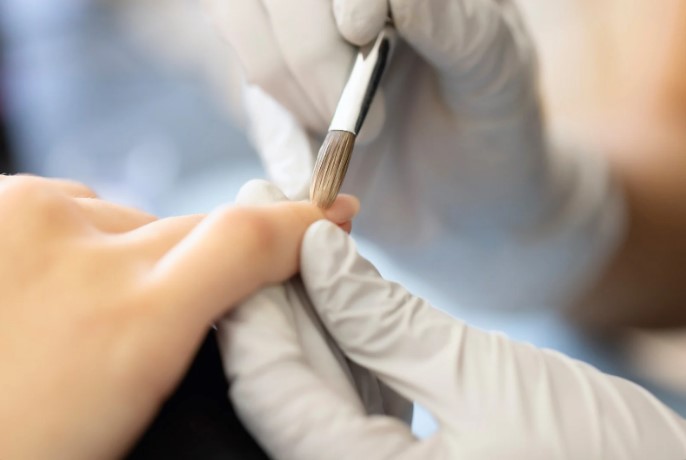 - Подготовить ногти: Отодвинуть кутикулу, убрать птеригий, придать форму, сделать лёгкую шлифовку пилкой.